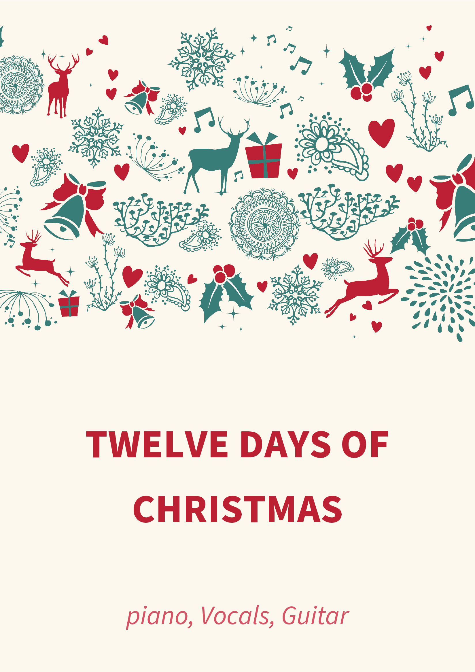 Dieses Notenheft enthält die Originalnoten zum Weihnachtslied "Twelve Days Of Christmas" für Klavier, Gesang und Gitarre. Leichter Schwierigkeitsgrad in F-Dur mit Liedtext.