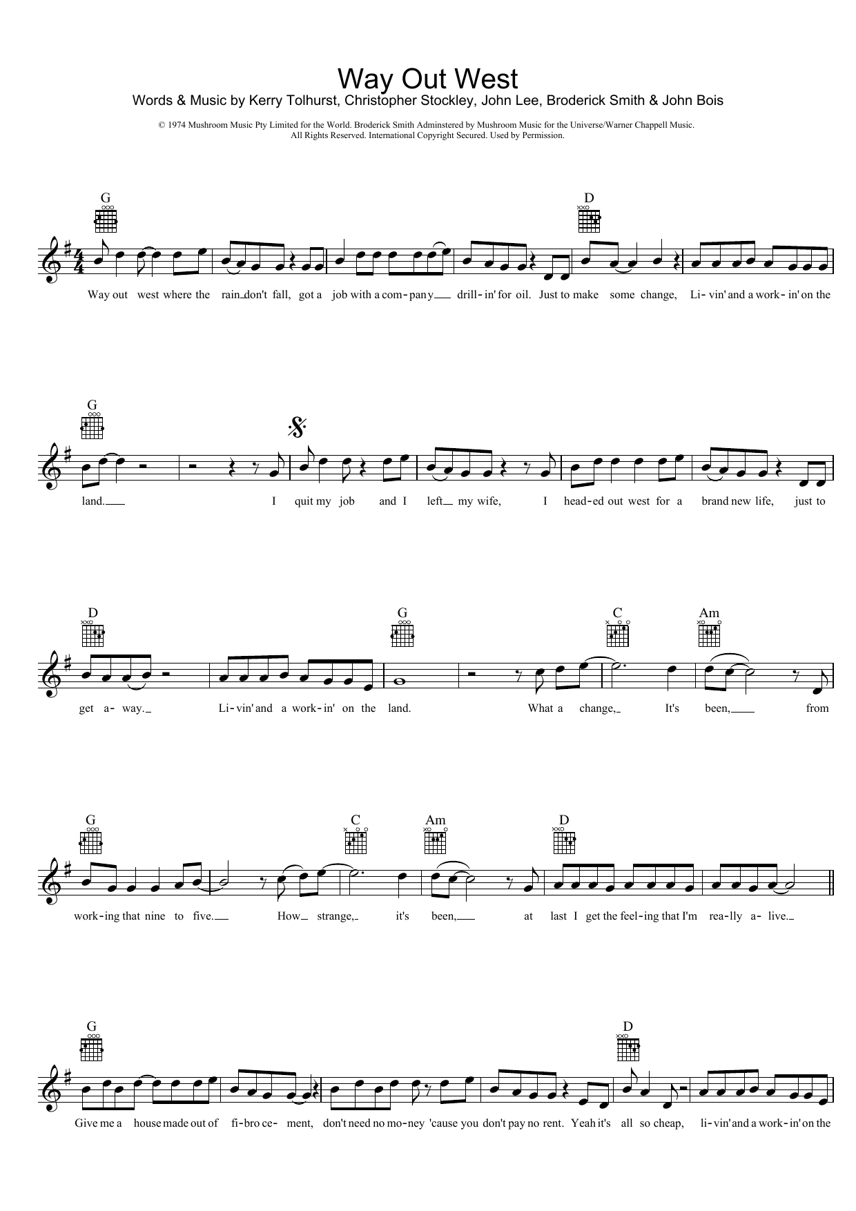 - Komponist Kerryn Tolhurst, Broderick Smith, Christopher Stockley, John Bois