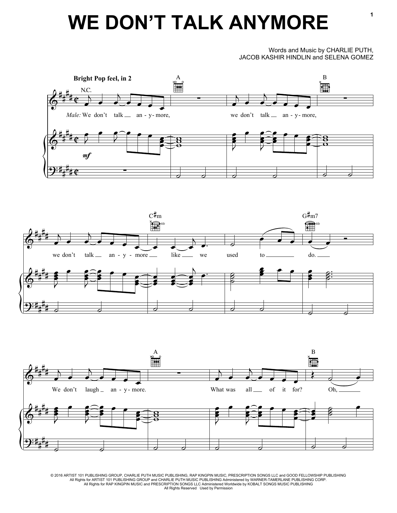 - Komponist Jacob Kasher Hindlin, Selena Gomez Charlie Puth