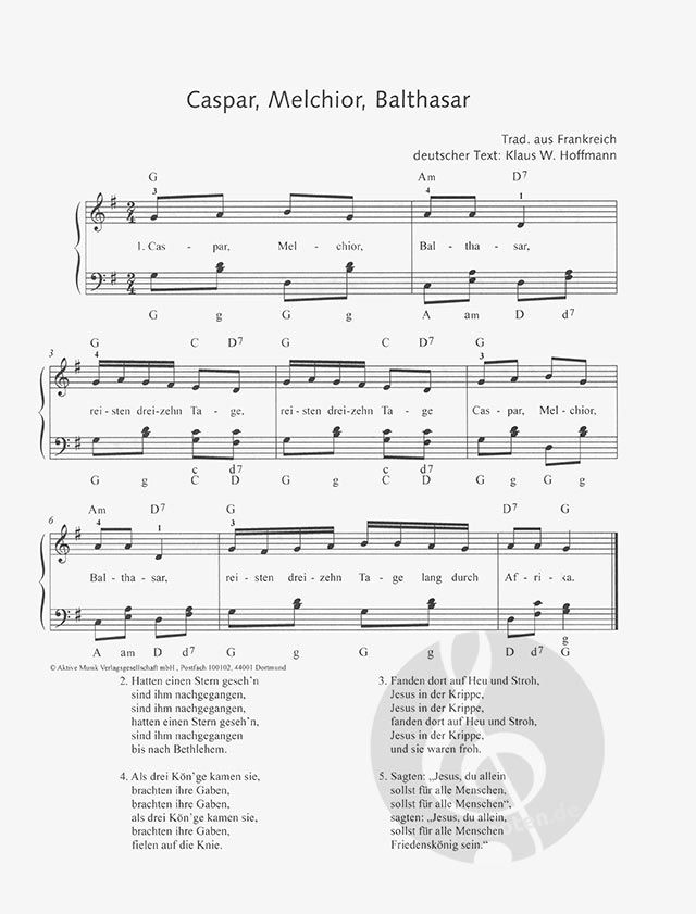 - Noten (Melodie, Text und Akkorde)