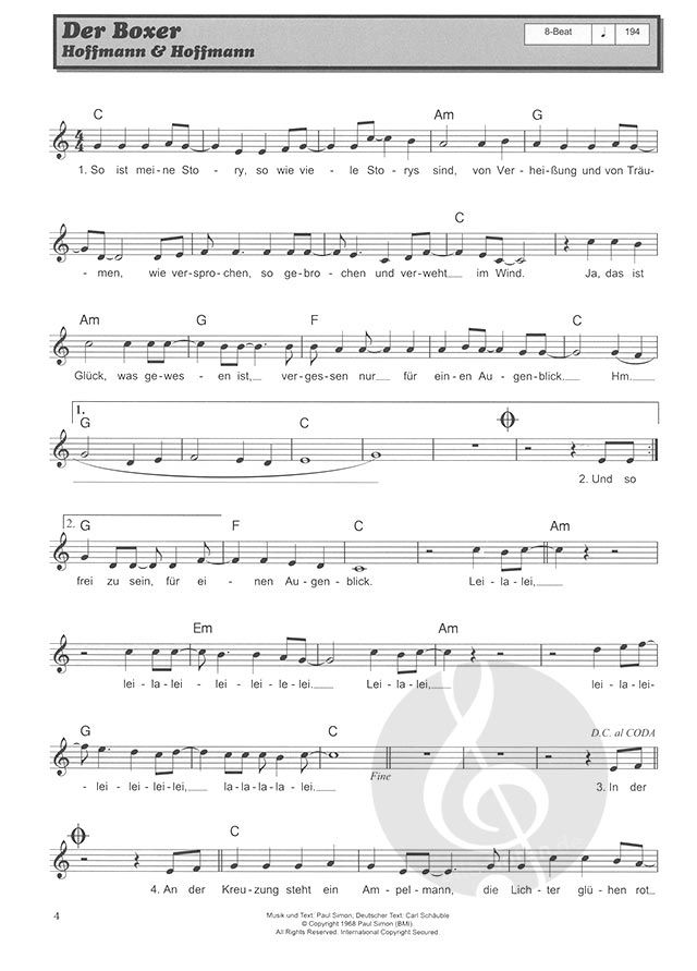 - Ausgabe Noten (Melodie, Text und Akkorde)