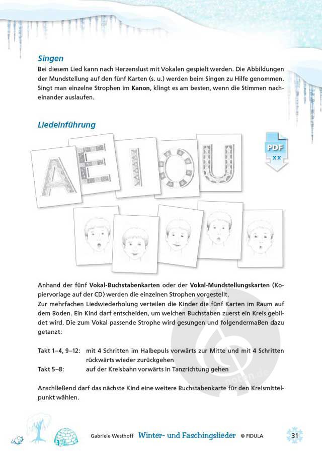 Mit den "Winter- und Faschingsliedern" liegt nun nach den Bänden zu Frühling, Sommer und Herbst der vierte Teil der Jahreszeiten-Liederbuchreihe vor. Mehr als 130 Lieder, Verse und Stimmgeschichten bilden den Winter mit all seinen Facetten (Schnee, Frost, Schlittenfahren, Winter ohne Schnee, im Ewigen Eis …) ab und berücksichtigen auch die närrische Faschingszeit in Lied und Tanz.