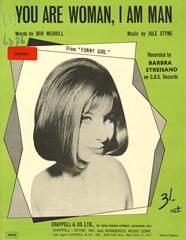 You Are Woman, I Am Man, as performed by Barbra Streisand, from 'Funny Girl', arranged for voice and piano with guitar chords.