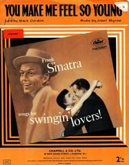 You Make Me Feel So Young, written by Josef Myrow with words by Mack Gordon, from the 20th Century Fox Technicolor Musical 'Three Little Girls In Blue', arranged for voice and piano with guitar chords.