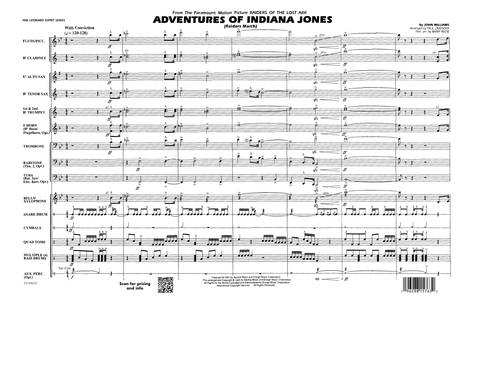 Hier ist ein rasantes und kraftvolles Arrangement mit den bekannten Themen aus John Williams' "Indiana Jones"-Soundtrack. Enthält Raiders March und Marion's Theme.