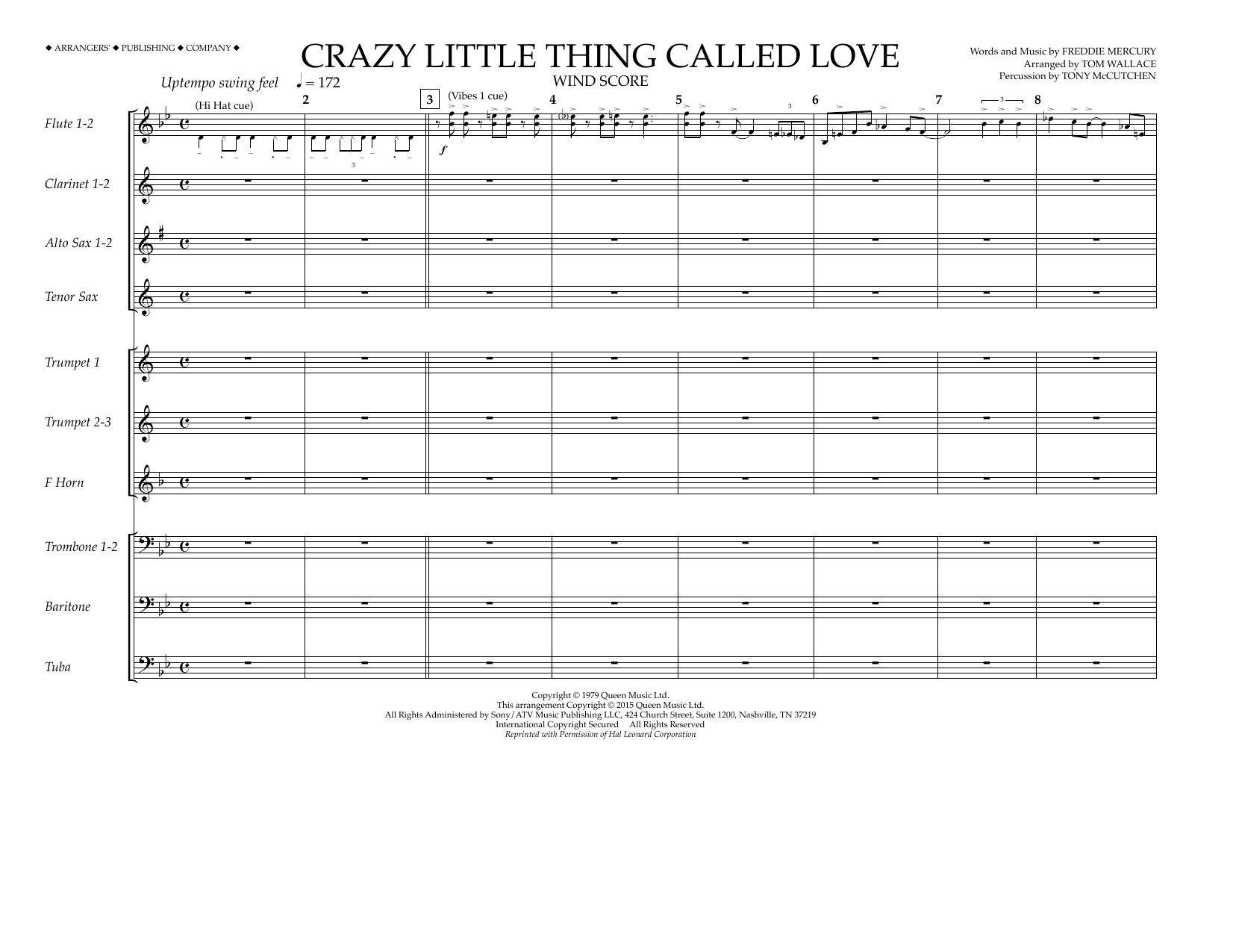 This production number, beginning with a short jazz mallet ensemble, provides a nice change of pace before moving into a full-blown, up-tempo, swinging version of this classic Queen hit...a great choice for dancers and percussion sections needing a little attention.