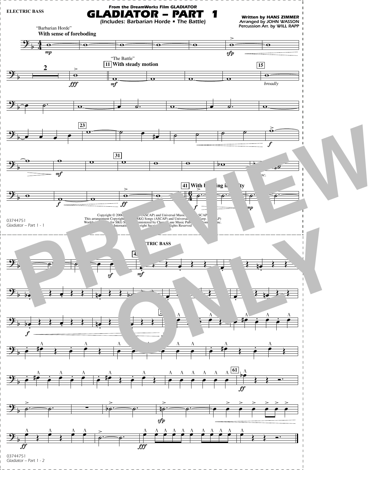 The dramatic and powerful themes of Hans Zimmer helped define the action in this Academy Award-winning movie blockbuster. Skillfully adapted for the marching field by John Wasson and Will Rapp, here is a complete show based on this emotional music. Part 1 includes Barbarian Horde and The Battle. This opener starts out mysteriously before building to the flowing main theme. An intense percussion pattern leads to the exciting battle sequence that closes out this powerful arrangement.