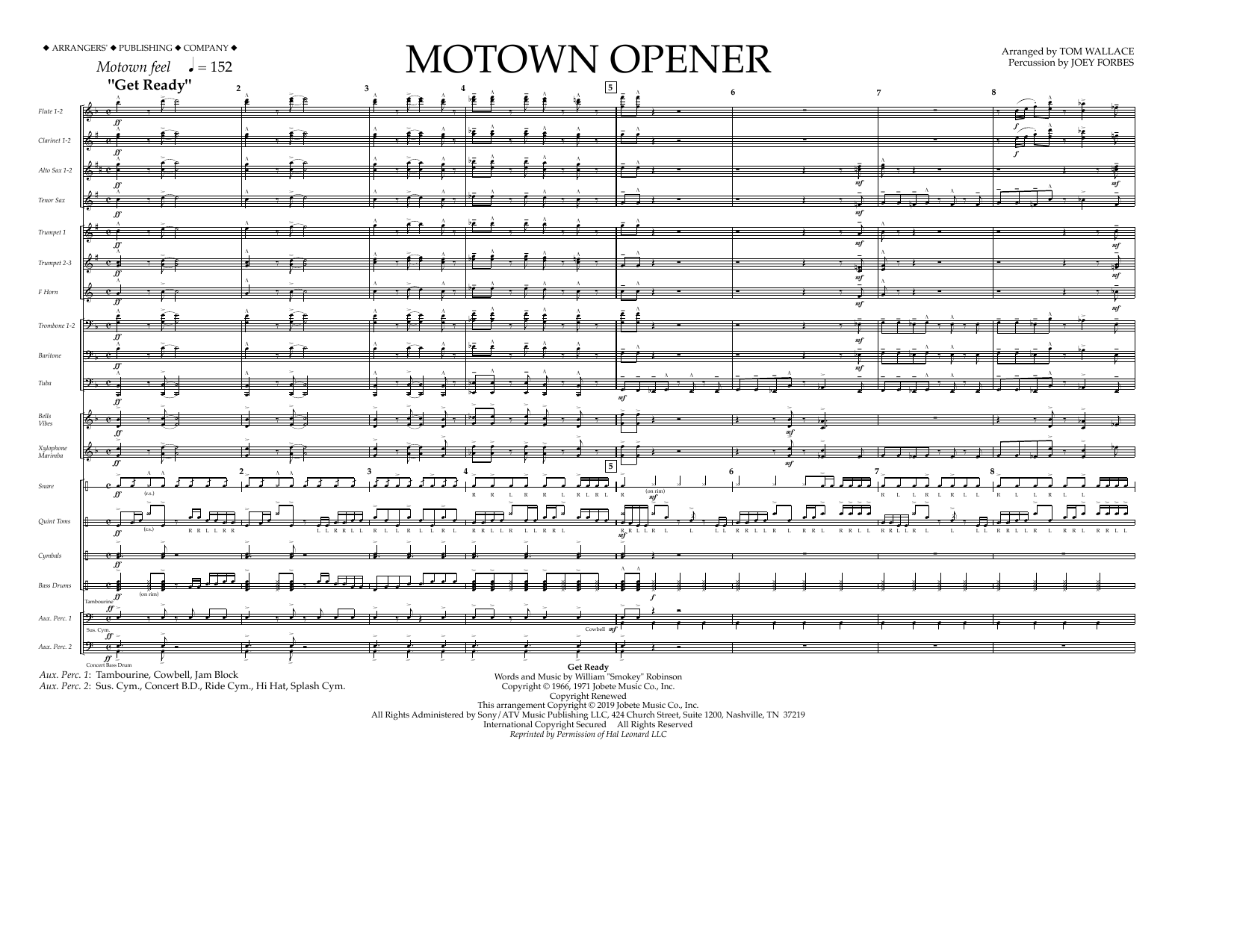 This arrangement is the opening number for the complete theme show MOTOWN, and includes five legendary hit songs from Motown artists: Get Ready (The Temptations); Dancing in the Street (Martha & The Vandellas); Stop! In the Name of Love (The Supremes); I Can't Help Myself/Sugar Pie, Honey Bunch (The Four Tops); Reach Out and I'll Be There (Jackson Five).