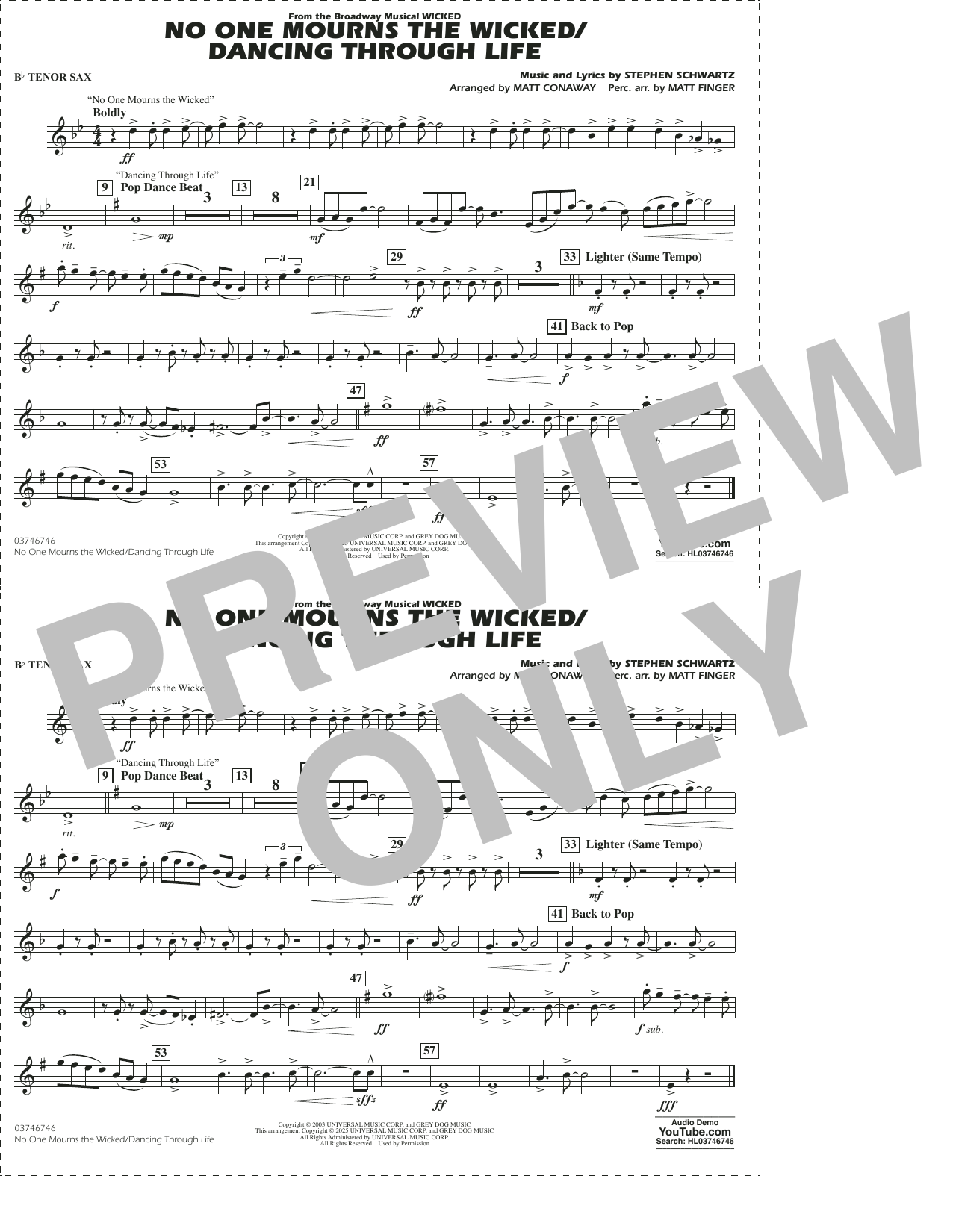 aus "Wicked" für Marching Band - Bb Tenor Sax