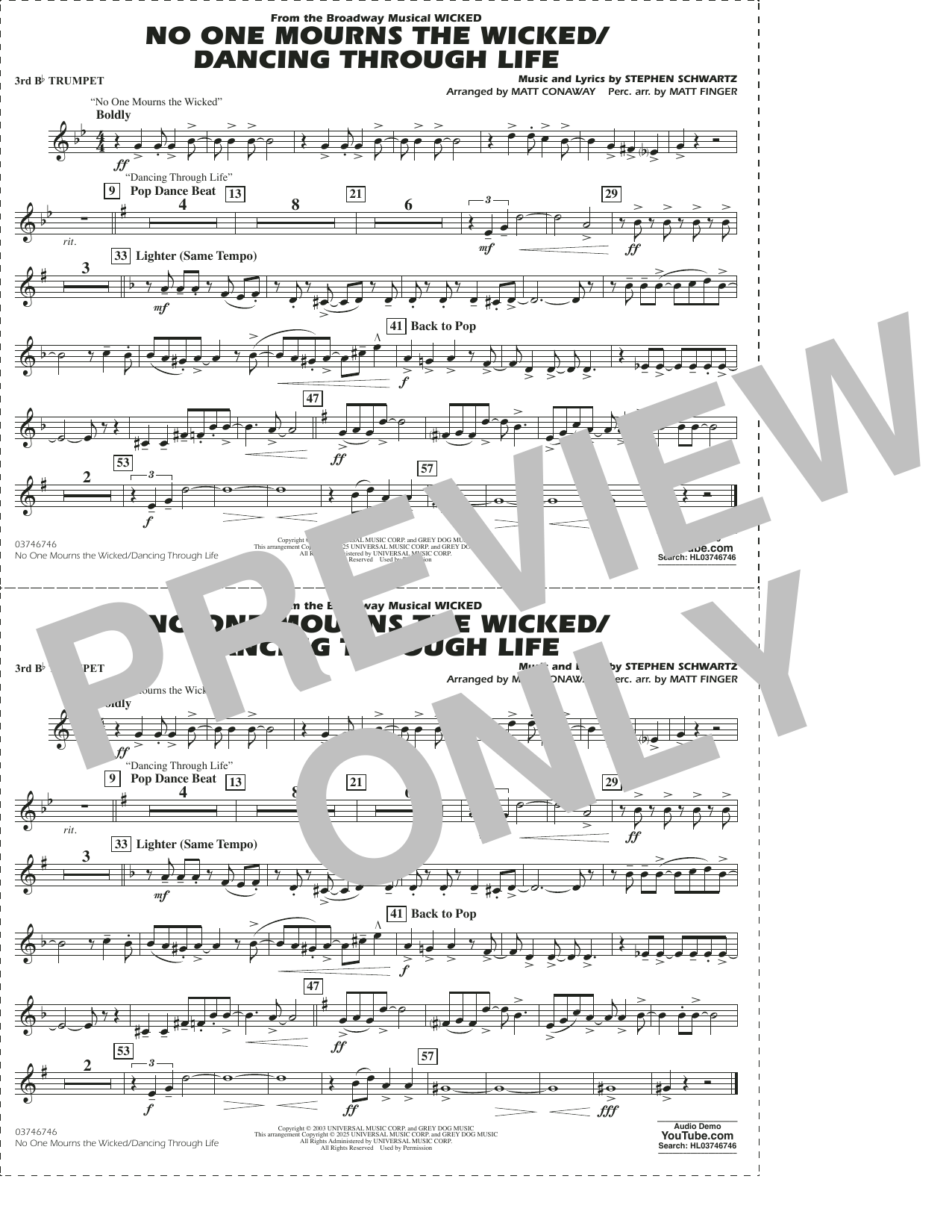 aus "Wicked" für Marching Band - 3rd Bb Trumpet