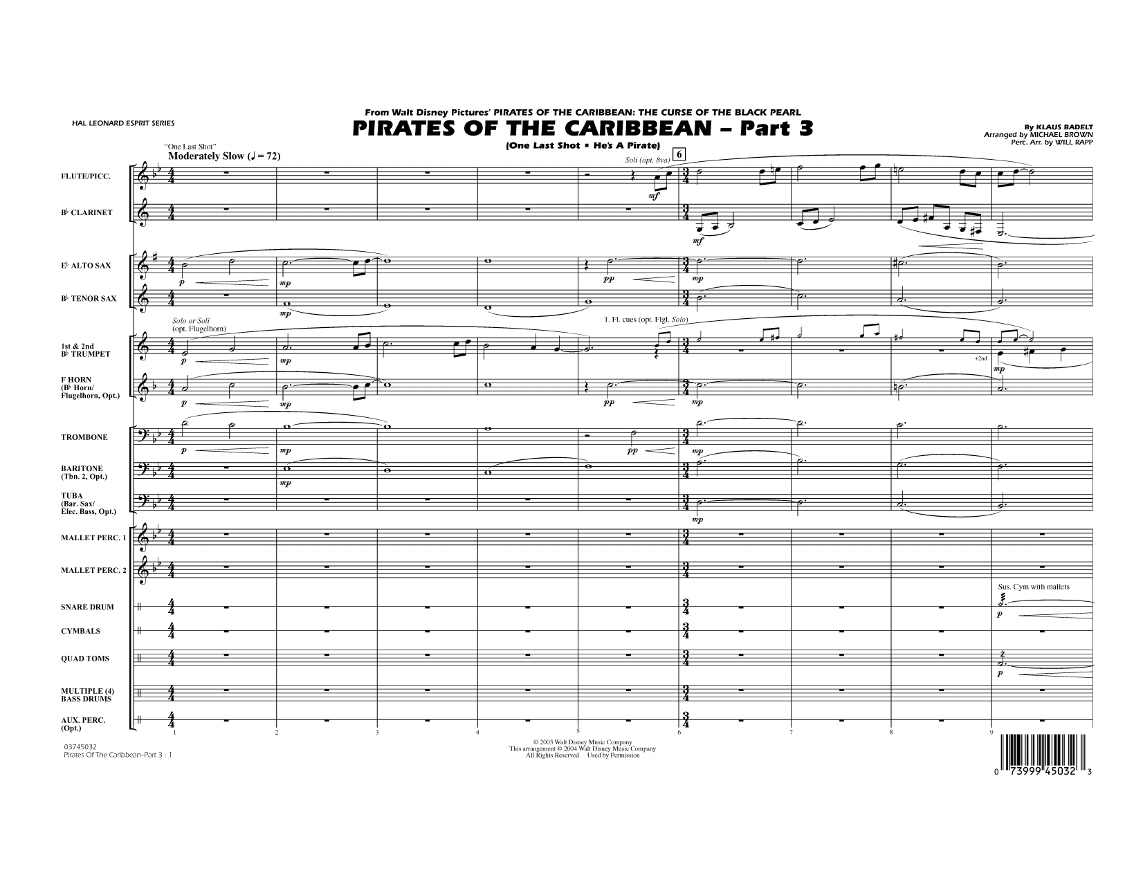 The tender One Last Shot provides the emotionally charged musical climax to the movie and is beautifully orchestrated by Michael Brown and Will Rapp. This production is then brought to a suitably rousing finish with the energetic He's a Pirate. Very effective writing for the field!