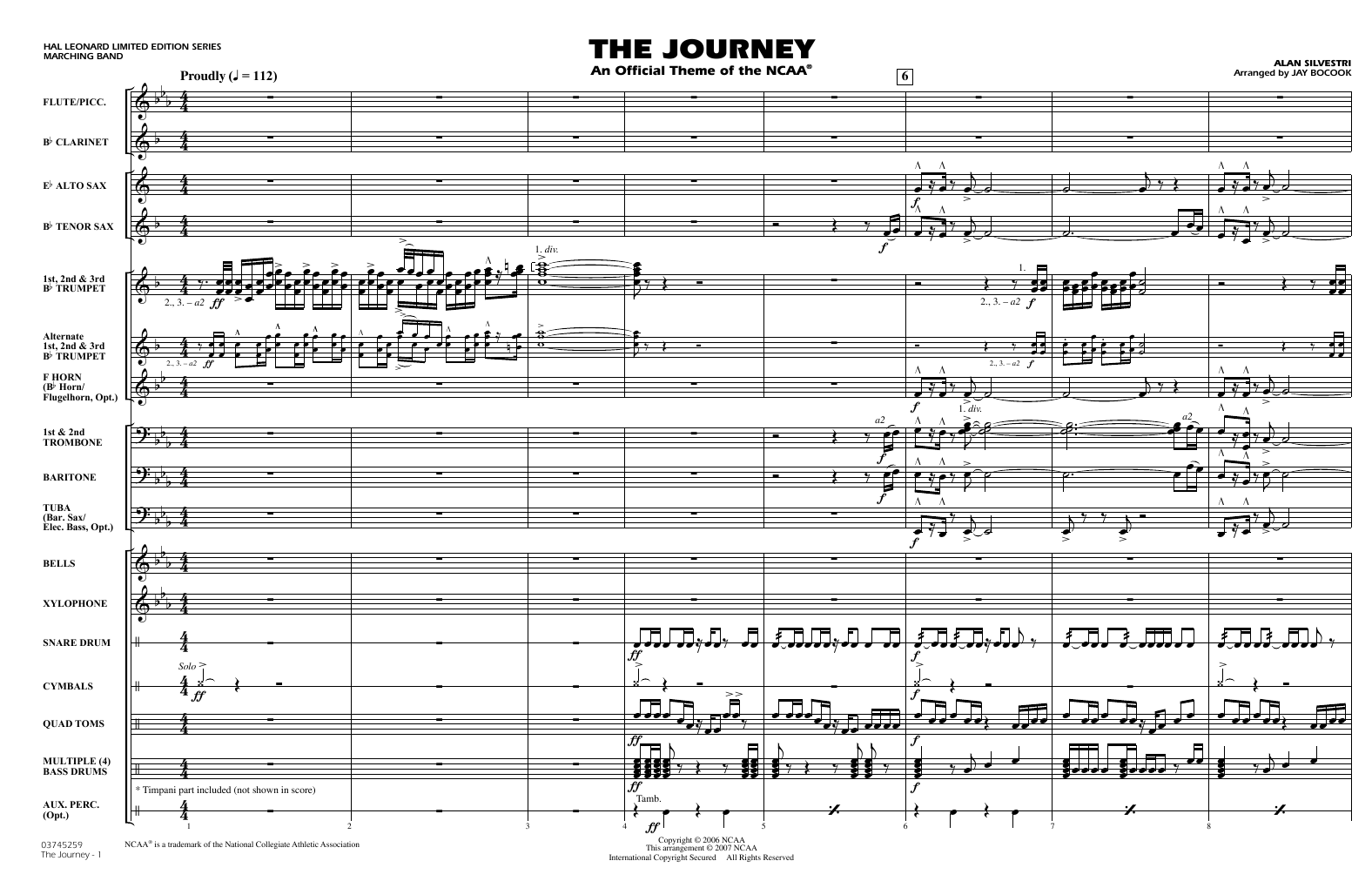 Well-known film composer Alan Silvestri (Back to the Future, The Polar Express, Night at the Museum) was asked by the NCAA to write a new official theme to be used for all their sporting events. This impressive new theme opens with a stunning trumpet fanfare and is propelled by a driving rock percussion groove. Sure to become classic stadium and fieldhouse fare! (This arrangement also includes optional easier trumpet parts for less experienced players.)