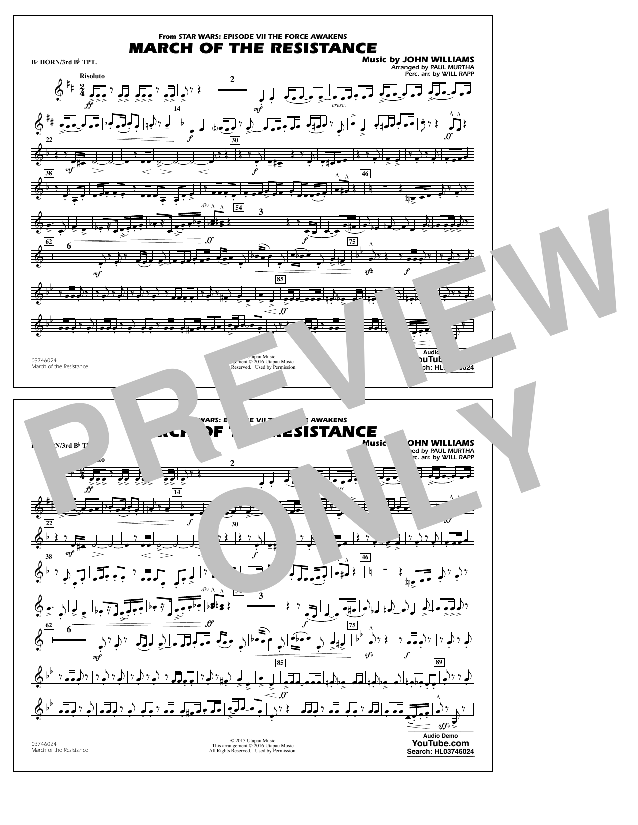 (from Star Wars: The Force Awakens) - Bb Horn/3rd Bb Tpt