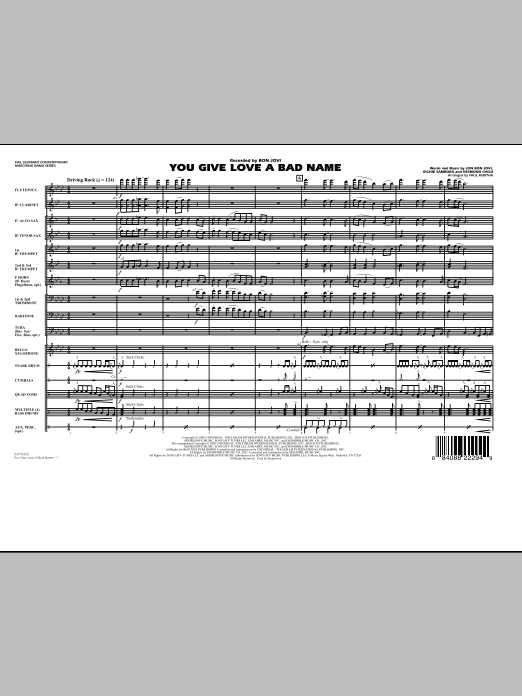Rock group Bon Jovi scored a major hit with this rock anthem from the '80s. With an opening that screams and a bass line that churns, this chart packs plenty of impact with dynamic contrasts and solid writing.