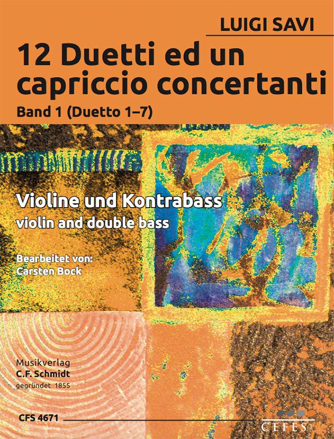 Die Autorenschaft der 12 Due ed un Capriccio concertan per violino e contrabasso, Grundlage der hier vorliegenden Editon ist die 1856 bei Ricordi in Mailand erschienene Erstausgabe, ist nicht eindeutig belegt. In den meisten Quellen wird der italienische Komponist Luigi Savi (15.04.1803 in Parma - 03.01.1842 in Florenz) als Autor genannt.