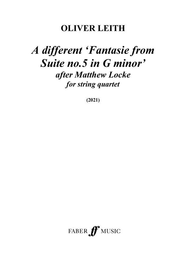 The score to A different Fantasie from Suite No.5 In G Minor, "arranged" by Oliver Leith for string quartet in digital sheet music format.