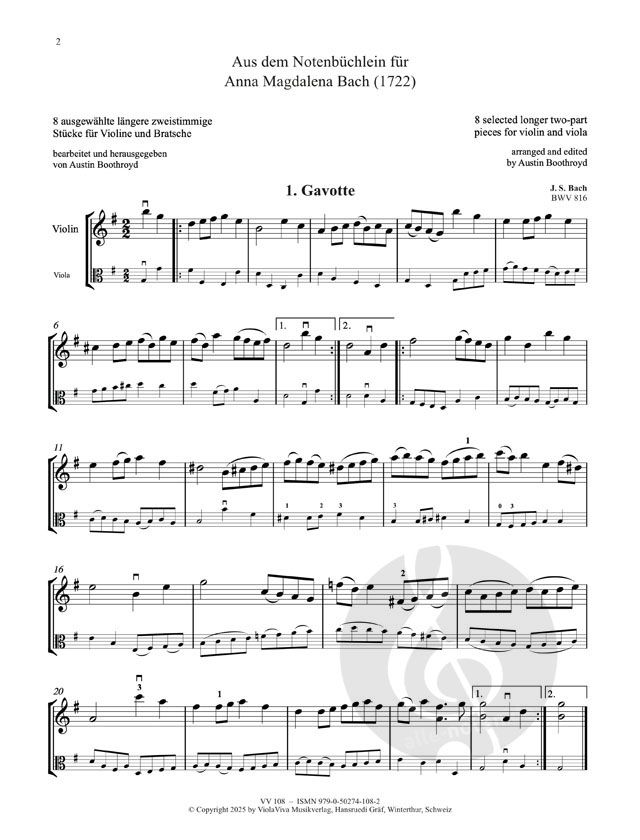 8 ausgewählte längere 2-stimmige Stücke für Violine und Bratsche