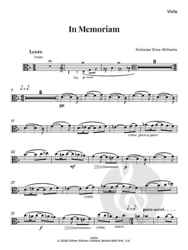 In memoriam wurde 2001 als Hommage an drei enge Freunde und angesehene Gelehrte der iranischen Sprachen geschrieben, die alle in jenem Jahr starben: Ron Emmerick, Neil MacKenzie und Ilya Gershevitch. Die drei Instrumente des Streichtrios, von denen jedes abwechselnd den Hauptpart übernimmt, symbolisieren die drei Kollegen. Die Musik wurde von den folgenden Zeilen von Emily Dickinson inspiriert, die viele Musiker aus der Vertonung von Aaron Copland kennen werden: