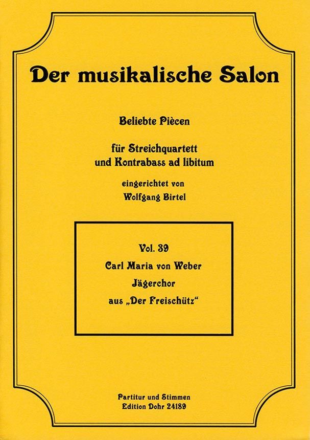 Reihe: Der musikalische Salon Vol. 39. Streichquartett, Kontrabass ad lib.; Partitur, Stimme(n). Format: 5 S. Part. + 5 x 1 S. Stimmen - 29,7 x 21 cm.