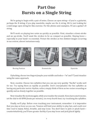 Learn To Burn: How To Play Fast Using Speed Bursts is written for string instrumentalists who want to learn to play faster. Students start with two notes and build to longer, more intricate bursts of notes. The book's simple methodology provides a strong mental and physical foundation for picking or plucking virtuosic passages. Although not written for bowed instruments, the methodology could easily be applied. This concise approach is a comprehensive system for learning to play fast, addressing all the variables specific to string instruments.