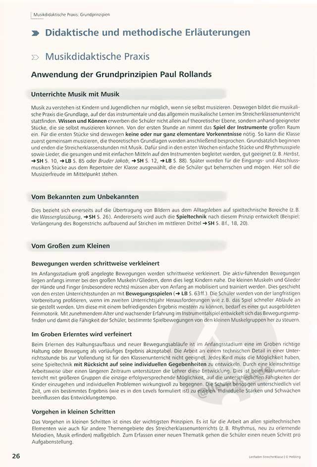 > Vielseitige Spielliteratur (künstlerischer Eigenwert aller Stücke und Übungen) mit allmählich steigenden Anforderungen.