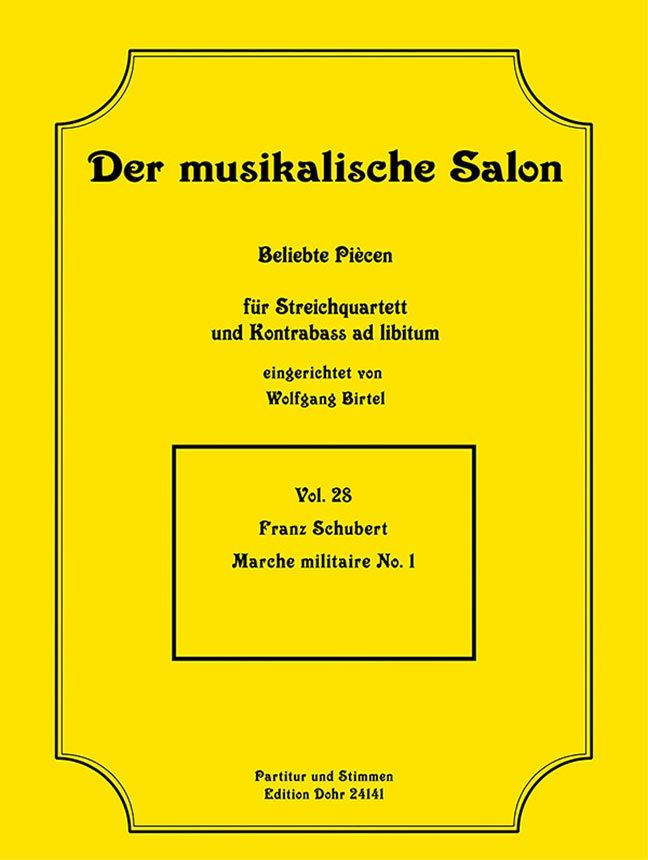 Reihe: Der Musikalische Salon Vol. 28. Streichquartett, Kontrabass ad lib.; Partitur, Stimme(n). Format: 7 S. Part. + 4 x 4 S. Stimmen - 29,7 x 21 cm.