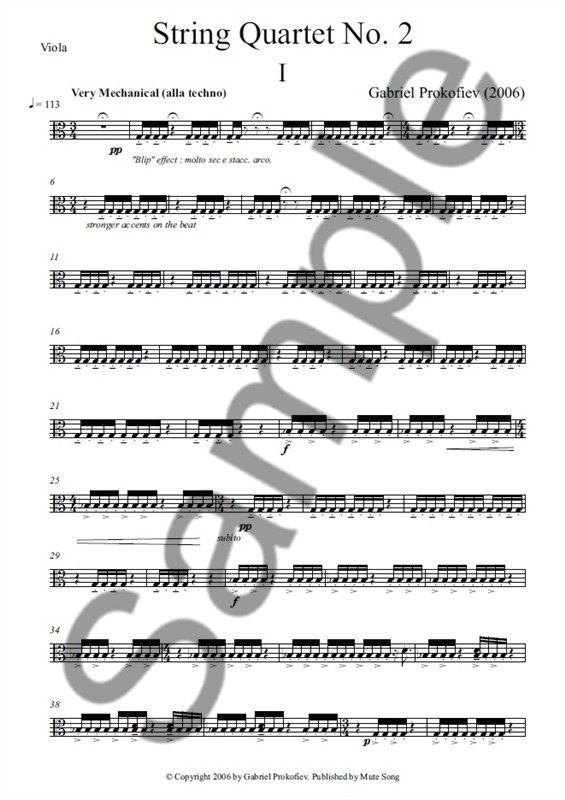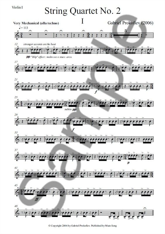 String Quartet No. 2 is a work by Gabriel Prokofiev for String Quartet, commissioned by The Elysian Quartet with support from the PRS for Music Foundation. The work lasts around 17 minutes. This is the Full Score and Parts.