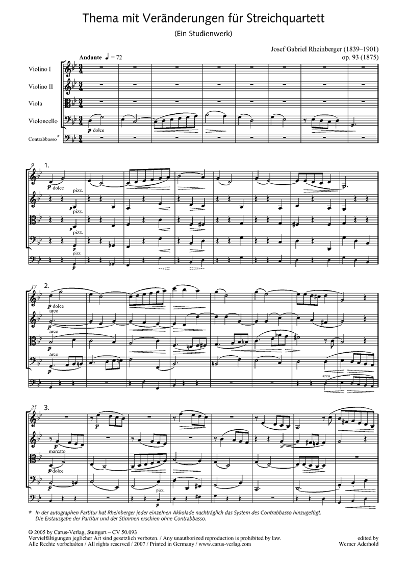 Thema mit Veränderungen für Streichquartett op. 93