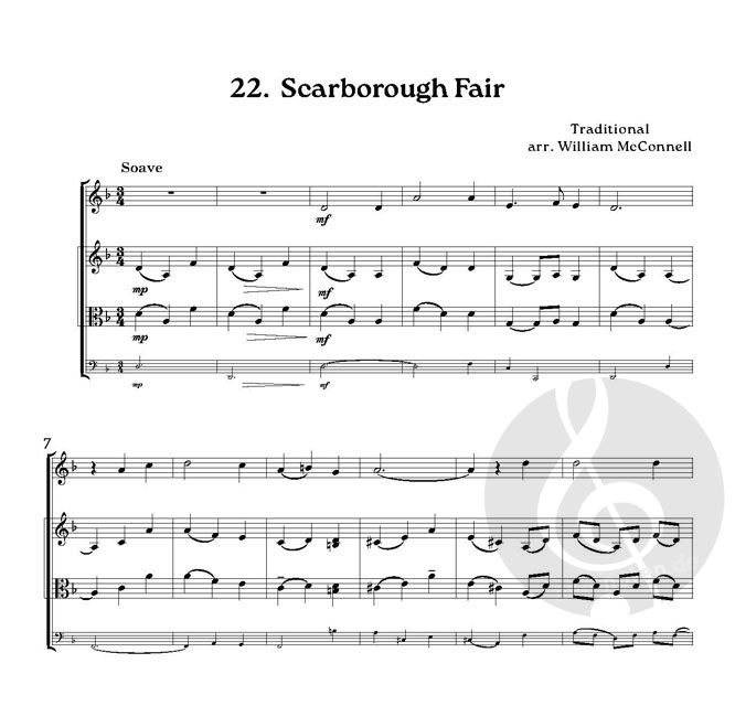 Ein flexibles Kompendium von 25 Folk Tunes aus Nordengland, arrangiert für zwei Violinen (oder Violine & Viola) mit optionalem Cello (downloadbar) von William McConnell. Enthält On Ilkley Moor Bahtat, Scarborough Fair, Dance Ti Thy Daddy, Blaydon Races und viele mehr.
