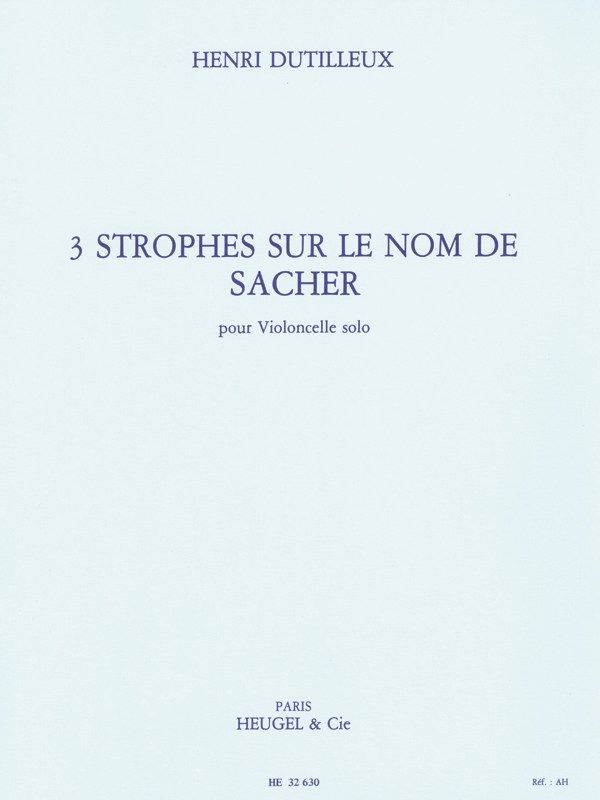 Written on the occasion of Paul Sacher's birthday, this 3 Strophes in the name of Sacher features three Cello pieces composed by Henri Dutilleux and reviewed by Mstislav Rostropovitch. It was first performed in an audition by thelatter in 1982. Henri Dutilleux composed the first part of this volume for the celebration and added the final two pieces later in 1976. The whole set requires the lowest strings of the Cello to be turned lower: G string to Fsharp and C string to B flat. A quotation from Bartok's piece 'Music for Strings, Percussion, and Celesta' can be noticed at the end of the first verse. For upper-advanced/experienced players. Henri Dutilleux was internationallyacclaimed for his work, winning prizes such as the Gold Medal of the Royal Philharmonic Society and the UNESCO's International Rostrum of Composers, among many others. His work also includes a Piano sonata, two symphonies, theCello concerto 'Tout un monde lointain' (A whole distant world), the Violin concerto 'L'arbre des songes' (The tree of dreams) and the string quartet 'Ainsi la nuit' (Thus the night).