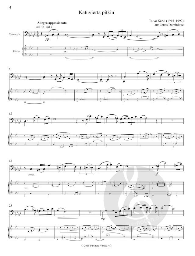 Finn Tango für Violoncello: Katuviertä Pitkin, Täysikuu, Kohtalon Tango, Liljankukka