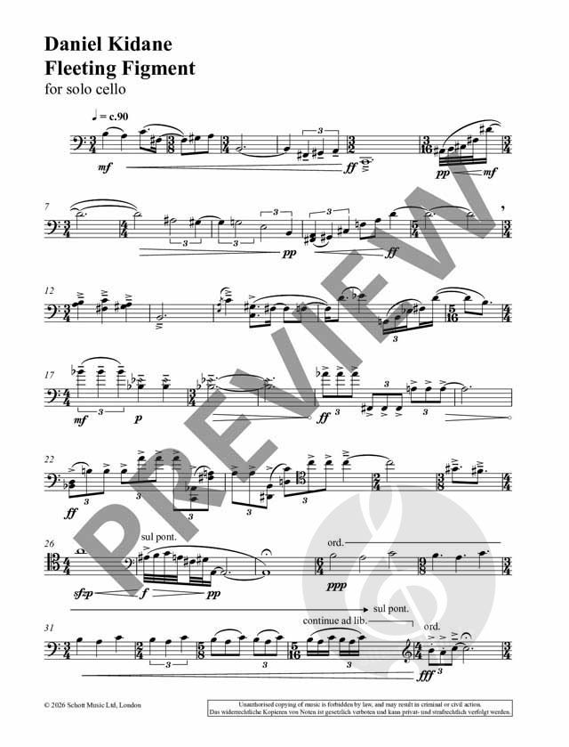 Fleeting Figment ist ein kurzes Stück für Solocello, das sich durch seinen Antrieb und seine Virtuosität auszeichnet. Während das Stück an Schwung gewinnt, fördert das Zusammenspiel zwischen den Registern eine frenetischere Energie vom Cellisten. © 2026 Daniel Kidane