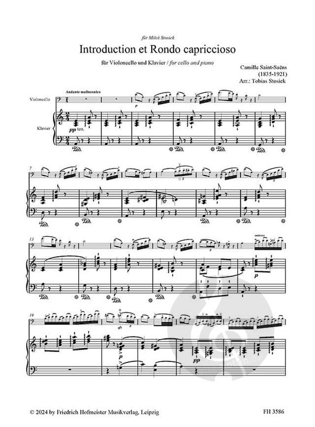Die "Introduction et Rondo capriccioso" von Camille Saint-Saëns wird oft als en Etüden-Ersatz verwendet, ist aber ein tiefgründiges Charakterstück. Kantilenen mit Bezeichnungen, wie z.B. "Andante malincolico" = melancholisches/ schwermütiges/ wehmütiges Andante oder "con morbidezza" = mit Weichheit/ Sanftmut/ Zartheit/ Geschmeidigkeit, sind für das Cello wie geschaffen - und die virtuosen Passagen sind mit ein paar kleinen Tricks oder minimalen Vereinfachungen sehr gut machbar.