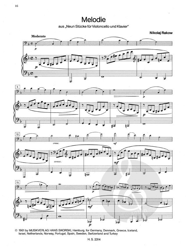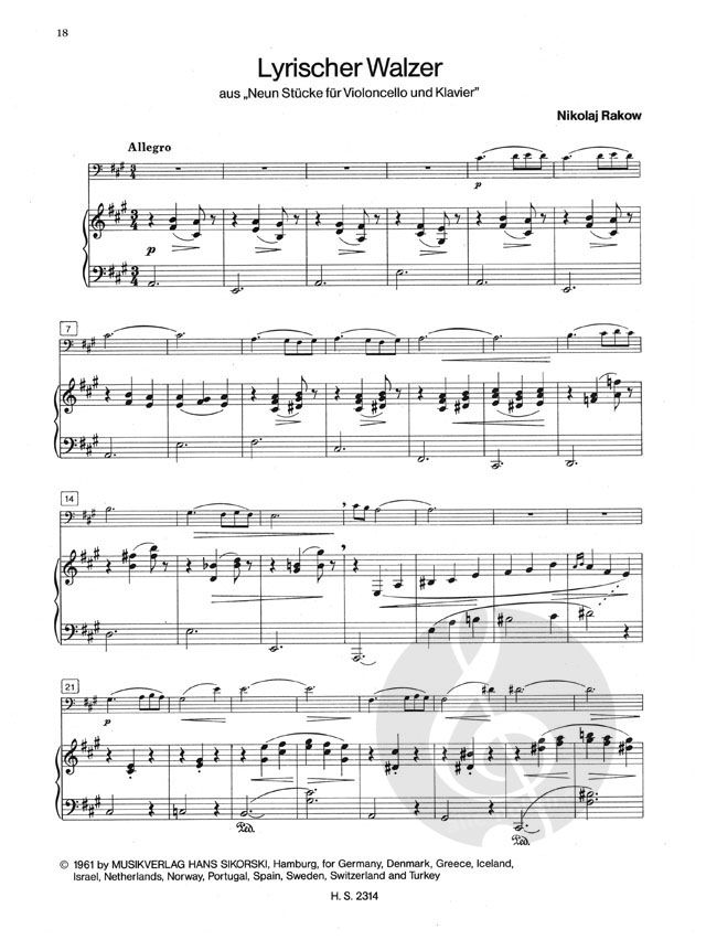10 progressiv geordnete Stücke von Goedicke, Kabalewski, Rakow und Tschalajew für Anfänger (Lagen 1 - 4 1/2) weitere Ausgabe / further edition: SIK 2315 Kleine Vortragsstücke russischer Komponisten Für Violoncello und Klavier. Heft 2: Fortgeschrittene (Lagen 1/2 - 7)