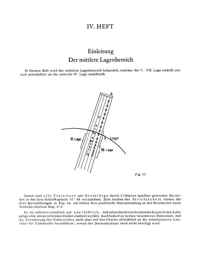 4., 2. und 3. Lage, Lagenwechsel, Spiccato, Tenorschlüssel, Flageolett, Literaturbeispiele
