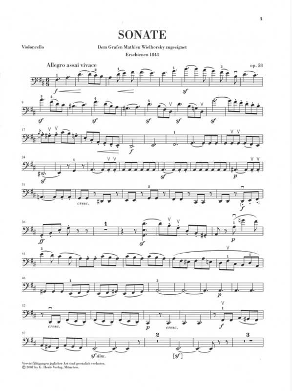 Drei große Werke steuerte Mendelssohn der Besetzung Violoncello und Klavier bei, nicht zuletzt deshalb mit besonderem Engagement, weil sein Bruder Paul Cello spielte. Neben den frühen Variationen op. 17 (1829) und der ersten Sonate B-dur op. 45 (1839) stellt die große Sonate op. 58 (1843) den Höhepunkt in Mendelssohns Schaffen für das Cello dar.