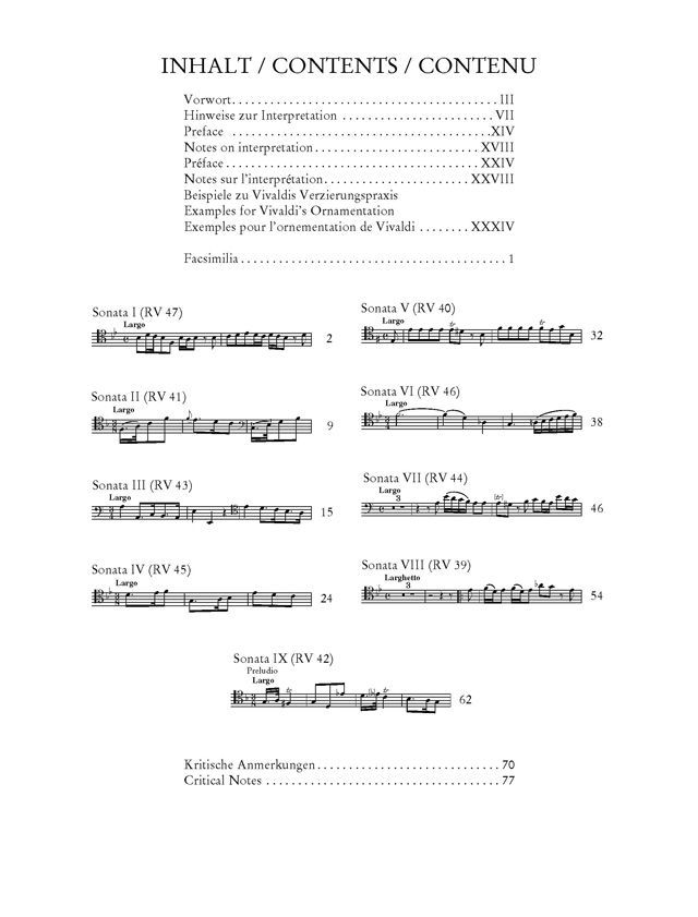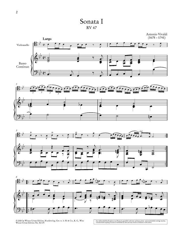 Die neun Sonaten für Violoncello und Basso continuo von Antonio Vivaldi zählen zu den bekanntesten Cellowerken des Barock. Dank ihrer moderaten spieltechnischen Ansprüche haben die Stücke einen festen Platz im Unterricht wie in der privaten Musikpflege. Aber auch für die professionelle Alte-Musik-Szene stehen sie im Brennpunkt des Cellorepertoires. Die Neuausgabe der Wiener Urtext Edition wird allen drei Zielgruppen gleichermassen gerecht. Sie bietet einen zuverlässigen Notentext, der nicht mehr auf dem unautorisierten Pariser Erstdruck von Le Clerc & Boivin beruht, sondern auf einer von Vivaldi selbst durchgesehenen Abschrift aus Neapel sowie zwei weiteren dem Komponisten nahestehenden Manuskripten aus der Bibliothèque Nationale in Paris und der Musikbibliothek der Grafen von Schönborn in Wiesentheid. Die Ausgabe umfasst neben der Solostimme eine Klavierpartitur mit ausgesetztem Generalbass, der als Musiziergrundlage Schülern und Amateuren sehr willkommen sein dürfte. Für den professionellen Continuospieler liegt eine unausgesetzte Generalbass-Stimme bei, in welche die Ziffern des Pariser Erstdrucks integriert wurden. Wenn auch nicht auf Vivaldi selbst zurückgehend, stellen diese doch ein Zeugnis der zeitgenössischen Generalbasspraxis dar und können als 'Handleitung' zur Ausführung der von Vivaldi unbeziffert gelassenen Bass-Stimme dienen. Detaillierte Informationen zur Aufführungspraxis liefern ferner die an historischen Quellen orientierten Interpretationshinweise von Gerhart Darmstadt.