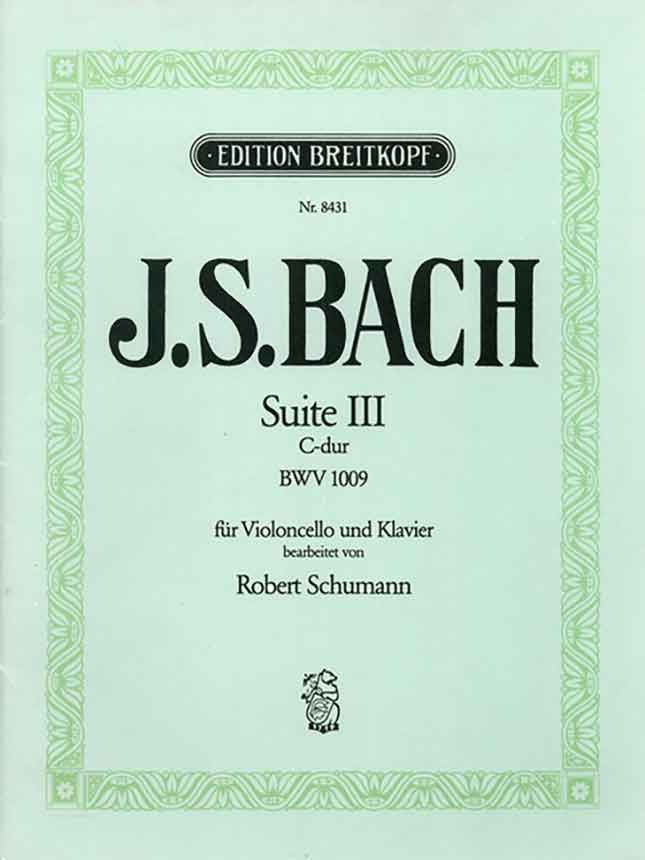Wiederum fiel mir ein, wie man mit Bach doch niemals fertig, wie er immer tiefer wird, je mehr man ihn hört. Dieser von Robert Schumann 1840 geäusserte Satz verweist auf die große Bedeutung, die Bach für Schumann gehabt hat und die die Ursache für seine intensive Beschäftigung mit dessen Werk darstellt; Abschriften, Herausgaben und Bearbeitungen zeugen davon. Im Jahr 1853, nach der Bearbeitung der Bachscheu Violinsonaten für Violine und Klavier schrieb Schumann auch zu den Sonaten für Violoncello einen Klavierpart. Diese Bearbeitungen blieben jedoch im Gegensatz zu denen der Violinsonaten bisher ungedruckt. Unser Erstdruck der Suite Nr. III basiert auf einer Abschrift des verschollenen Autographs, die Joachim Draheim entdeckte. Schumann wollte mit seiner Bearbeitung die musikalischen Qualitäten des Originals ins rechte Licht rücken. Sie ist nicht als Eingriff in das Werk oder als Stilbruch zu verstehen. So ist die Klavierbegleitung sehr dezent, als 'harmonisches Trageband' anzusehen. Ein ausführliches Vorwort und ein Revisionsbericht von Joachim Draheim liefern wichtige Informationen zum Verständnis des Werkes.