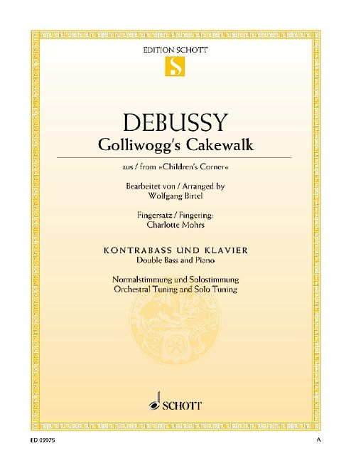 Der berühmte Golliwogg's Cakewalk ist das Schlussstück aus Debussys Zyklus Children's Corner - bestehend aus 6 Miniaturen für Klavier, die er 1906-1908 für seine Tochter verfasste. Der Ragtime-Stil bezieht sich auf den Tanz, der um die Jahrhundertwende in Mode kam. Im Mittelteil parodiert der Komponist mehrfach den Beginn der Oper Tristan und Isolde von Richard Wagner, zu dem Debussy ein eher zwiespältiges Verhältnis hatte. Das vorliegende Arrangement erlaubt es, den beliebten Satz nun auch in einer Version für Melodieinstrument mit Begleitung zu spielen.