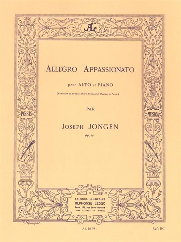 Belgian organist, composer and teacher, Joseph Jongen (1873-1953) was admitted to the Liège Conservatoire at the mere age of seven years old. Published in 1925, Allegro Appassionato is an extraordinary addition to the violarepertoire. Jongen won many awards during his sixteen years of musical education, including the Belgain Prix de Rome in 1897. He began composing at age 13 and therefore, has an exhaustive catalogue of works to his name. AllegroAppassionato is a virtuosic work for the Viola, addressing aspects such as harmonics, exploited tonality, chromaticism, double stops, flourishing semiquavers, complex rhythms, articulation and a significant amount if performancedirections and dynamics, among other elements. For all advanced violists, Jongen's Allegro Appassionato is essential to a varied repertoire.