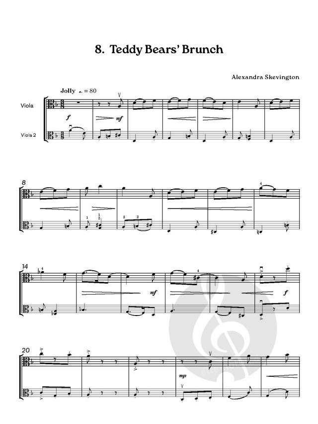 Dies ist ein Buch für Bratschenschüler in ihren ersten Lernjahren. Die Stücke 1 bis 3 sind für diejenigen gedacht, die ungefähr die Note 1 erreicht haben; die Stücke 4 bis 6 sind für diejenigen, die an der Note 2 arbeiten; die Stücke 7 bis 9 eignen sich für diejenigen, die die Note 3 erreicht haben. Für meine Schüler ist ein Duett ein Vergnügen, und wenn ich ehrlich bin, freue ich mich auch auf diese Teile des Unterrichts. Vielleicht geht es Ihnen auch so?