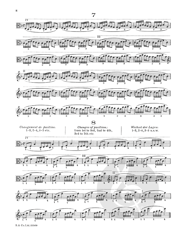 Exercises in position changes and scales throughout 3 octaves for relatively advanced pupils. The Sevcik Viola Studies are a superb collection of exercises to help develop a student's bowing style, accuracy, rhythms and wristspeed/strength.