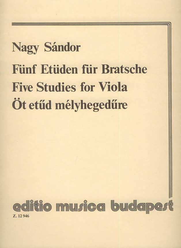Fünf Etüden für Viola aus der Feder von Sándor Nagy (*1952), Schüler von Pál Lukács, Albert Simon und György Kurtág am Ferenc Liszt Konservatorium Budapest und Gründer des Budapest Festival Orchestra. Der ehemalige Solobratschist der Philharmonica Ungarica ist heute Gastprofessor in Tokio.
