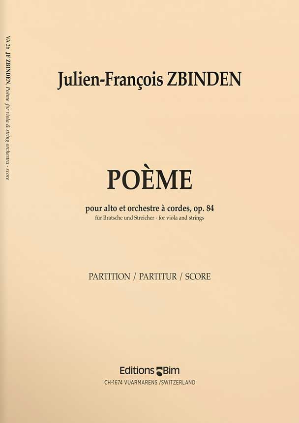 Das Poème für Viola und Streichorchester (oder Klavier) op. 84, ist Michael Murray-Robertson gewidmet. Das einsätzige Werk beginnt mit einem Ostinato, das sich zu einem großen Crescendo steigert. Der Instrumentalsolist antwortet heftig mit einer Kadenz, die ruhiger wird, um ein dissonantes Motiv aus aufsteigenden Viertelnoten vorzubereiten, das sich durch den Rest der Komposition zieht. Ein Andante bildet den Mittelteil des Werks in Form einer Romanze. Auf diese Episode folgt ein leichtes und virtuoses Allegro marcato, das eine zweite Kadenz des Solisten einleitet. Die folgende, ruhige und ausdrucksstarke Passage greift kontrapunktisch das Thema der Romanze auf. Nachdem ein Zitat aus dem Allegro dramatisch endet, schließt das Werk ruhig, aber nicht ohne Traurigkeit. Es verklingt mit Obertönen in der Bratsche. Der letzte Ton, ohne Begleitung gespielt, verklingt im Nichts. Das 1994 geschriebene Poème wurde in seiner Orchesterfassung am 16. Dezember desselben Jahres in der Hospitalkirche der Alten Abtei in Sevilla, Spanien, uraufgeführt. Michael Murray-Robertson wurde von den London Chamber Players unter der Leitung von Adrian Sunshine begleitet. Julien-François Zbinden