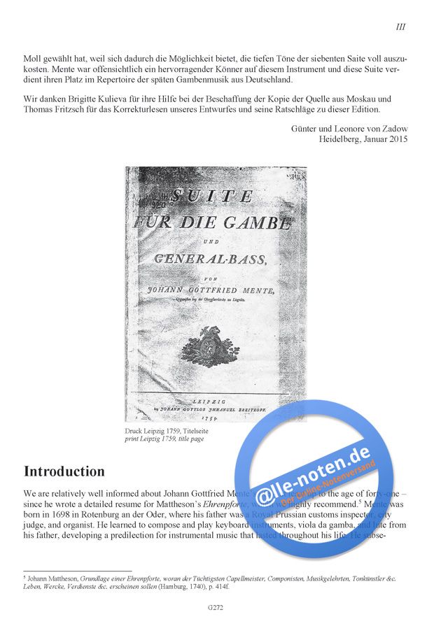 In dieser Suite mischen sich die Einflüsse der französischen Gambenmusik (Marais) mit denen der deutschen Empfindsamkeit (J.G. Graun, C.P.E. Bach, Schaffrath). Schnelle Läufe und vielstimmige Akkorde zeichnen diese eingängige und mitreißende Musik aus. Es ist wohl kein Zufall, dass Mente die Tonart A-Moll gewählt hat, weil sich dadurch die Möglichkeit bietet, die tiefen Töne der siebenten Saite voll auszukosten. Mente war offensichtlich ein hervorragender Könner auf diesem Instrument und diese Suite verdient ihren Platz im Repertoire der späten Gambenmusik aus Deutschland.