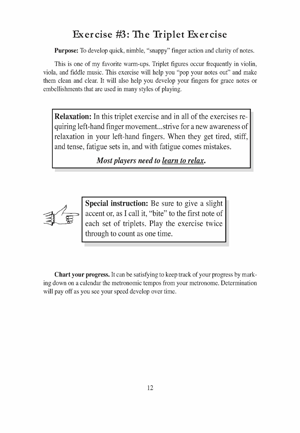 Warm-ups for the Violist is an adaptation of Warm-ups for the Violinist. It is targeted to help build, strengthen and develop the muscles and techniques needed for viola playing. It is especially suited and created for the more casual violist who is sincerely interested in getting maximum benefit from a minimum of effort. I first tested these scales and exercises on myself for six months, faithfully using them for about 20 minutes as warm-ups to my daily practice. I was rewarded with a definite improvement in my technique. I was actually surprised to see my dexterity grow as I charted my metronomic progress on a calendar. I remember thinking, 'I will never be able to play faster than this. ' But then a couple of weeks later I would indeed climb a notch higher!Through the years I have used these exercises in countless workshops and with private students. The letters of thanks and positive feedback from students who were thrilled with improved violin and fiddle technique have brought me great satisfaction. Progress with these exercises is like the progress of a body builder. Body builders do not get up in the morning and think, 'I am going to develop and build my muscles today, ' and instantly look like Mr. Atlas. It takes weeks, months and for some, years, to attain results. It must be done over a period of time. Like all diets and exercise programs, determination and dedication are most important to success! I sincerely believe that these exercises, when faithfully practiced, will help violists improve their skills. The exercises will help develop and strengthen muscles used for finger dexterity, clarity of notes, tone, bowing-arm control, intonation, double stops, and a flexible bowing-arm wrist. A companion audio play-along recording is available online.