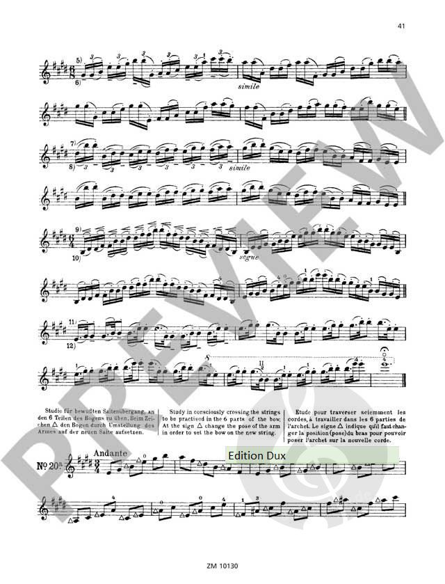 Maxim Jacobsen (1887-1973) war ein genialer Pädagoge. Wie er in diesem Band das Problem der Bogentechnik umfasst, ist mustergültig. Die textlichen Anweisungen sind kurz und klar. Die Anordnung der einzelnen Studien ist streng progressiv. Das Werk fesselt wie ein spannendes Buch. Jacobsen regt den/die begabten Schüler/in und Lehrer/in zum eigenen Nachdenken an. Mit mechanischem Drill hat diese Arbeit nichts zu tun, was zu seiner Zeit ein außergewöhnlicher Ansatz war.