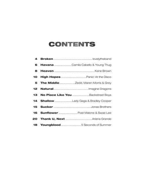 A dozen contemporary hits are included in this collection perfect for budding instrumentalists.