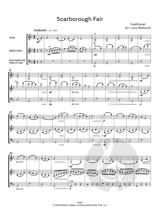 Ein attraktives und flexibles Set von drei traditionellen Arrangements für zwei Violinen mit oder ohne Hilfe einer Bratsche oder eines Cellos, um ein improvisiertes Trio zu bilden!