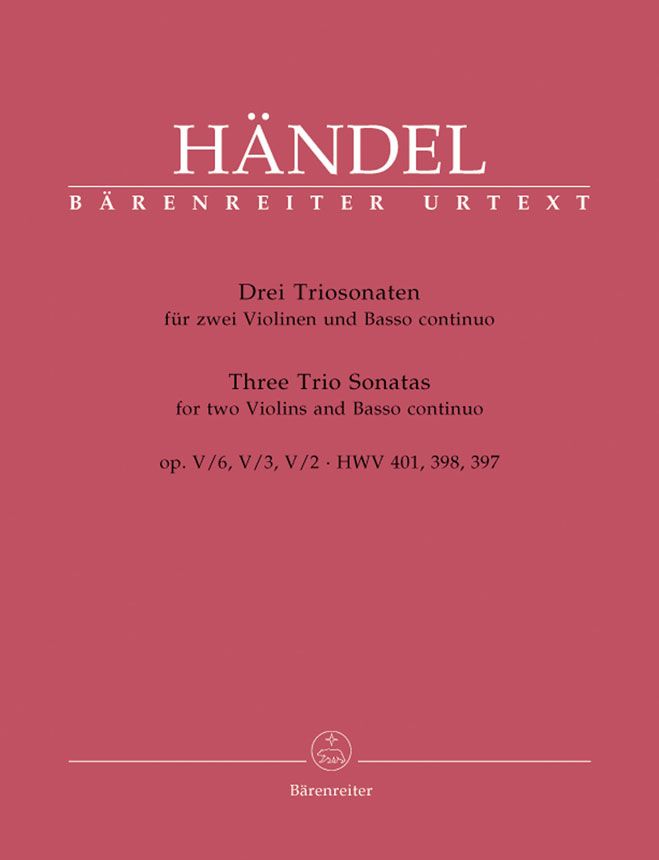 Sonaten aus op. 5: HWV 397 D-dur, 398 e-moll, 401 F-dur. Urtext der Hallischen Händel-Ausgabe - Sonatas op.5: HWV 397 D major, 398 e minor, 401 f major. Violine (2)/ Flöte, Basso continuo - Spielpartitur; Stimmensatz; Urtextausgabe